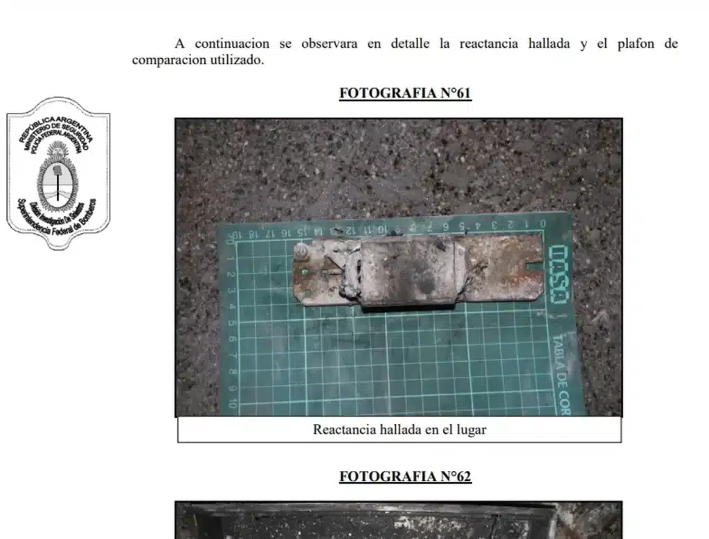 “El foco se originó dentro de una oficina del sector planta baja, en la reactancia de un plafón de iluminación, a unos cuatro metros del acceso por calle 48”, detalló el informe técnico, realizado por la División Brigada Especial Federal de Rescate (B.E.Fe.R. III), junto con las Divisiones de Laboratorio de Ensayos Físico Químicos y Análisis de Información Siniestral de la Policía Federal Argentina.