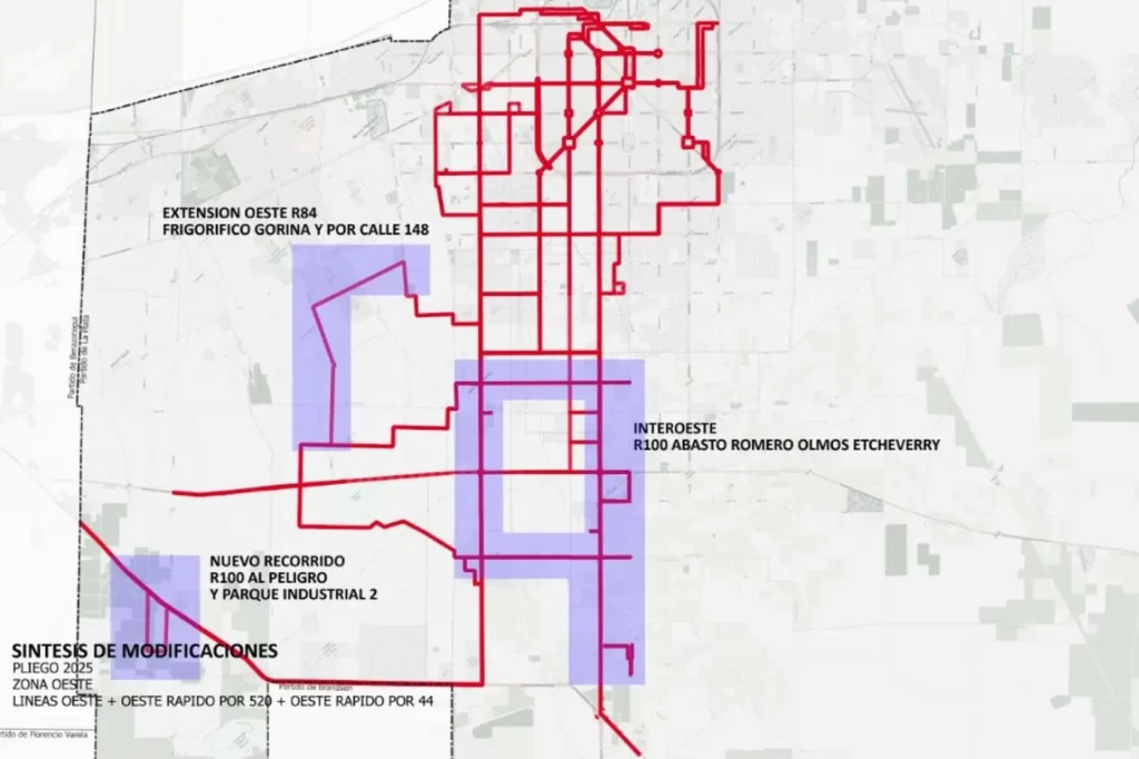 Las unidades rojas del Oeste también experimentarán cambios. Los nuevos esquemas conectarán localidades de la periferia, mejorarán la vinculación de zonas productivas industriales y residenciales. Se agregarán rondines en El Peligro, Abasto y el Parque Industrial II; habrá nuevos recorridos entre las localidades de Romero, Abasto, Etcheverry y Olmos; y se extenderá el ramal 84. También habrá servicios rápidos en la avenida 44 y la 520.